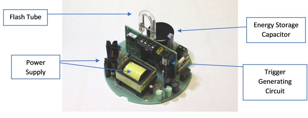 - The pulse generated by this trigger (typically 5 to 10 kV) is enough to ionize the xenon gas inside the flash tube.