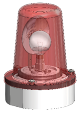The next type is a LED rotating mirror beacon. Whilst this is a higher-priced option in comparison to the filament lamp model, this beacon has a low power consumption with a high light output. It is also long life making it ideal for more regular use with less maintenance required.